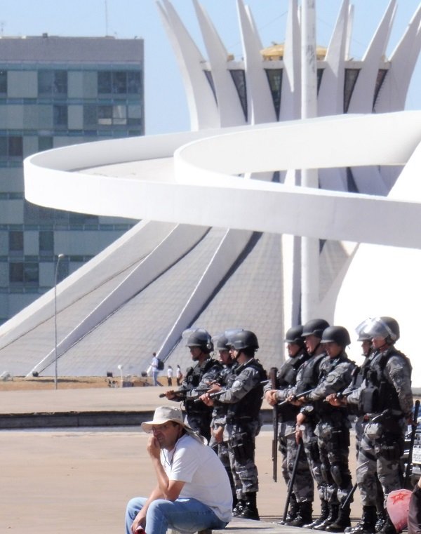 Wachsender Einfluss. Militärs vor Kathedrale in Brasilia