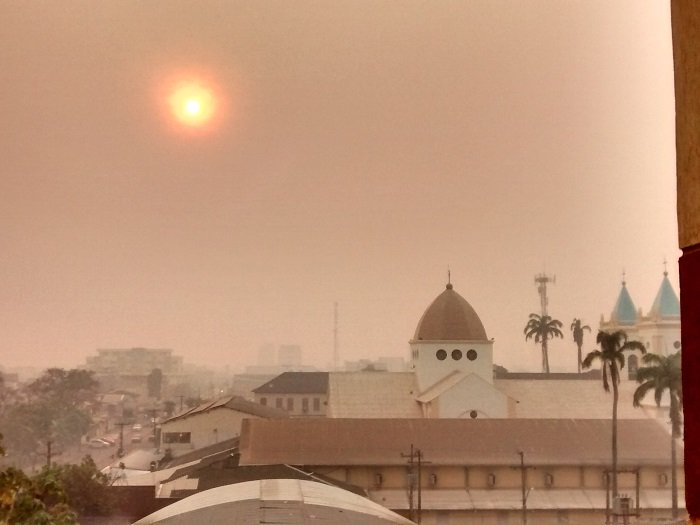 Nun, zeitgleich mit meiner Ankunft fing die ganze Welt an über und von der Amazonien-Brand-Katastrophe zu reden. Gut beraten war ich, die Hotelfenster geschlossen zu halten. Anfänglich dachte ich, da wird halt wieder Müll verbrannt, da zieht ein Qualm mal durch und verschwindet wieder, aber nein, er blieb und wurde so stark, dass zeitweilig sogar der Flughafen geschlossen werden musste. Das kannte ich von früheren Jahren schon, als der internationale Flughafen von Santa Cruz de la Sierra/Bolivien wegen Rauchentwicklung dicht gemacht werden musste. Doch diesmal zogen die schwarzen Schwaden sogar bis ins 2000 km entfernte Sao Paulo, verdunkelten mittags den Tag und schreckten die